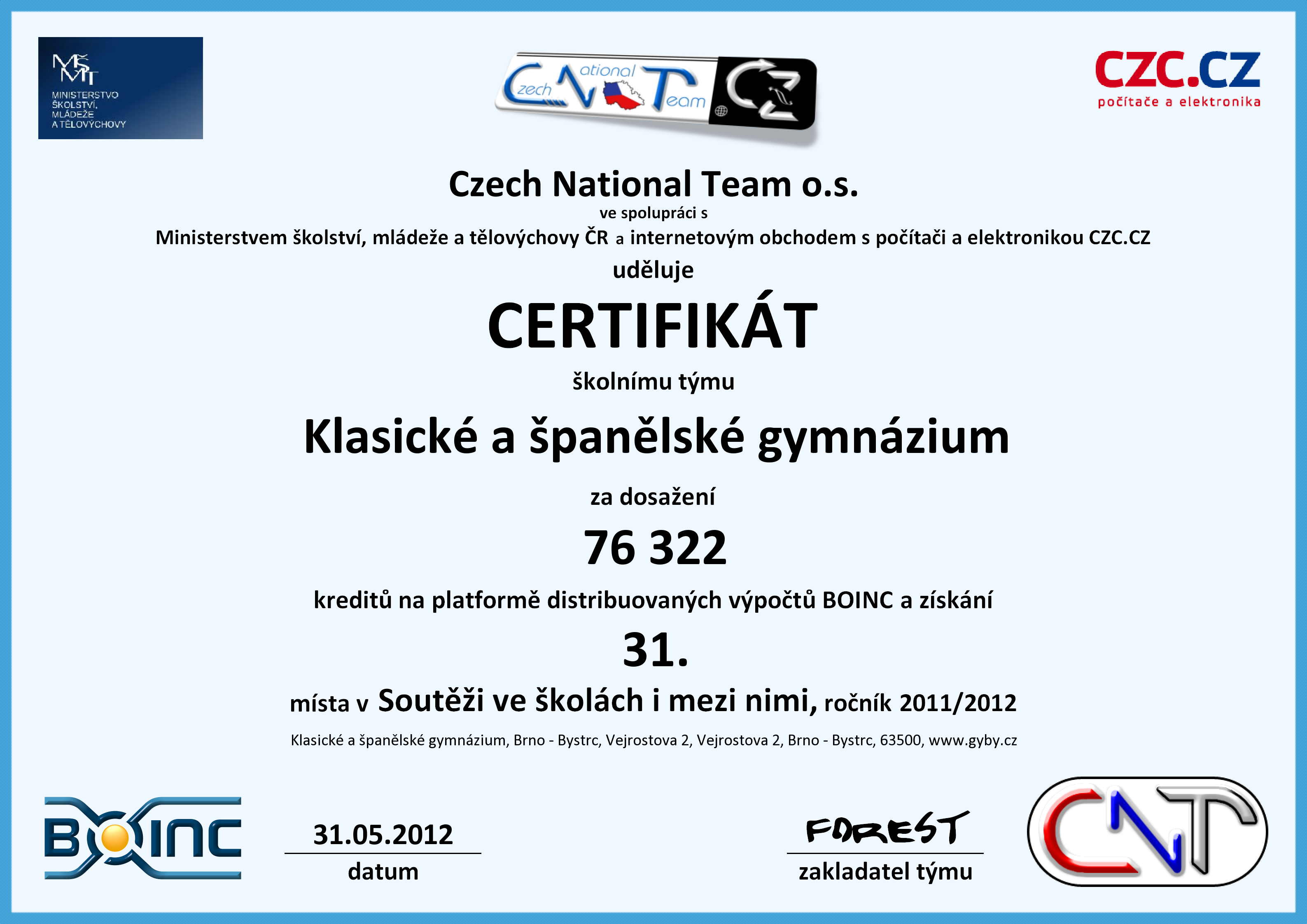 | Název školy | Klasické a španělské gymnázium, Brno - Bystrc, Vejrostova 2 |
